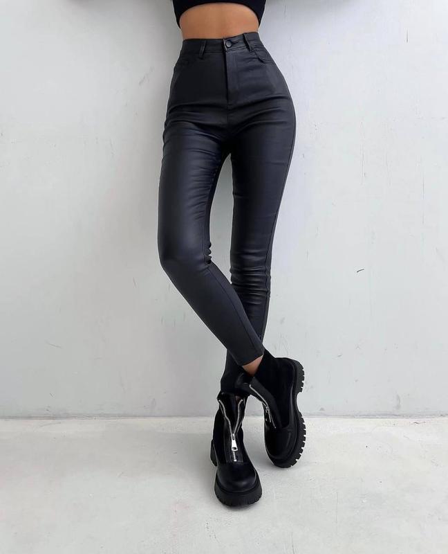 Кожаные брюки скинни Сзади присутствуют карманы 🔜Мод. 1184 ➡️Размеры: 42-44, 44-46 ➡️Ткань: экокожа ➡️Цвет: черный ➡️Длина изделия 97см Первый размер ОС до 92см Второй размер ОС до 102см