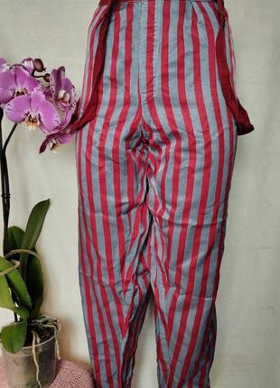 Прикольные штанишки на подтяжках, идеально подойдут для театральных постановок. На внутренней стороне есть катышки, на носке не влияет, снаружи все идеально. Бирки отсутствуют. Замеры: длина 95 шаг 66 посадка спереди 31 сзади 34 пот 42-50 (сзади резинка) пос 58.