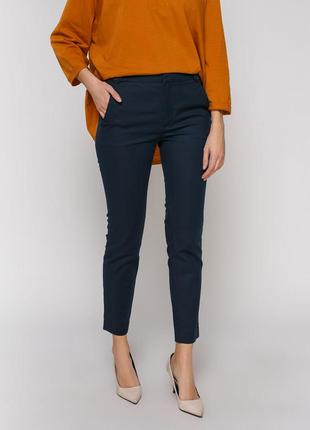 Стильные брюки, штаны Zara размер M На талии — шлевки для ремня. Спереди — боковые карманы, сзади — карманны обманки Состав 97% хлопок 3%эластан ткань тянется Замеры Длина боковая 91 длина шаговая 70 ширина штанины снизу 15 см ПО пояс 40-43 ПОБ 48-54 Посадка 22\33