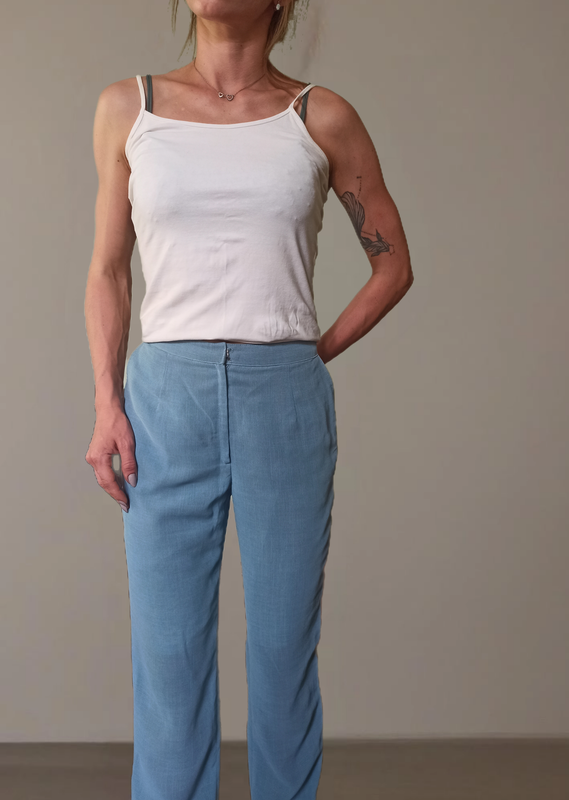 Штани на підкладці, легенькі ніжного голубого кольору прямий крій довжина 98см півобхват талії 35см