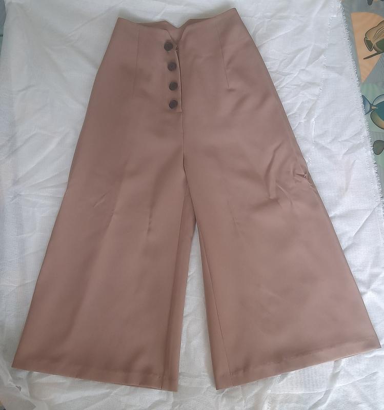 Брюки пастельно коричневого цвета, на молнии, пуговицы исключительно в качестве декорации изделия.