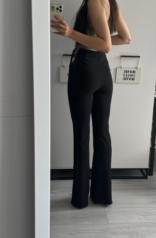 Черные длинные брюки клеш с вставками, хорошо тянутся, очень удобные. Наделись всего один раз