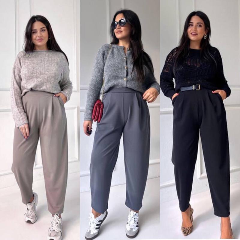 Модные брюки -бананы! Выполнены из качественного материала, очень хорошего качества костюмная ткань. Не скатывается, не теряет цвет👍 Модель свободного зауженного к низу кроя. Имеют резинку по спинке. Мод.259 Цена 1080грн Размер: 48-50,52-54,56-58 Цвет: черный, свет серый, графит Материал-эвро - костюмка Замеры по верху изделия, ткань имеет немного растяжимость. Выбирайте размер с запасом, чтобы было свободно по бедрам