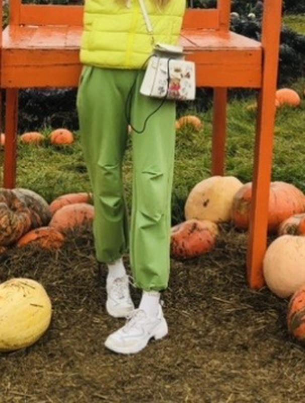 Джоггеры в идеальном состоянии. Цвет - темный лайм. Ткань-двуните. 100% натуральный состав. Крой- свободный Размер- XS-S