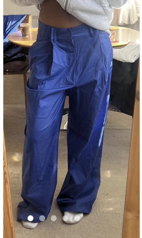 Очень классные широкие брюки Zara. Новые. Размер L. 52% коттон, 44% полиэстр, 4% эластан. Длина 113,5, шаг.82, пояс 43,5, ПОБ 57. Цена 499грн.