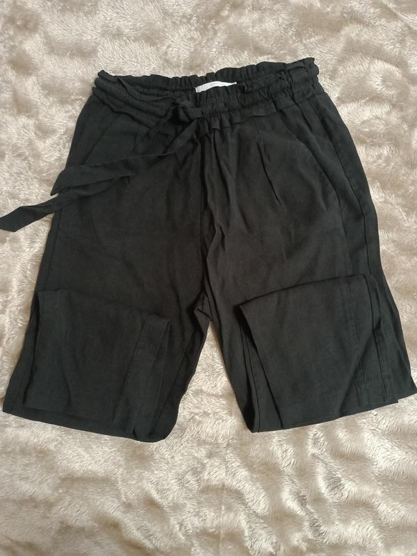 В поясе на резинке. Не длинные, для девочек низкого роста. Хорошо ложатся. Насыщенный черный цвет, фото не передает