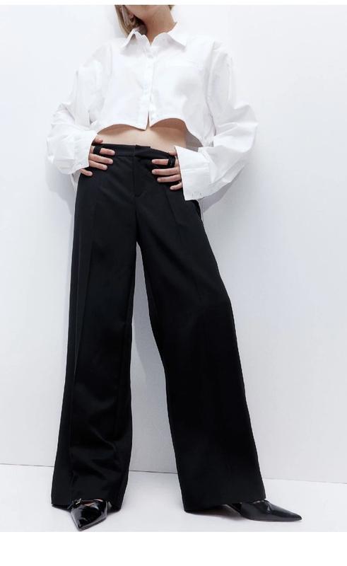 Стильні широкі штани від H&M. Висока посадка. Складки по переду. З кишенями. Стан нової речі. Паперові бірки відсутні. Пот 42 см. Поб 56 см. Вп 32 см. Д 107 см. Шн 26 см.