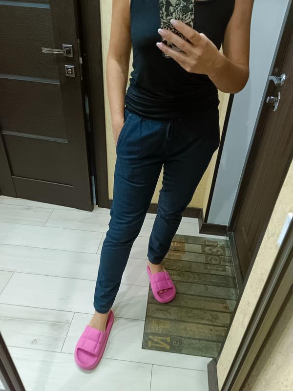 стильные и интересные пояс -34 посадка спереди-25 бедра-51 длина внешнего шва-94,5 ширина штанини знизу-14,5 см
