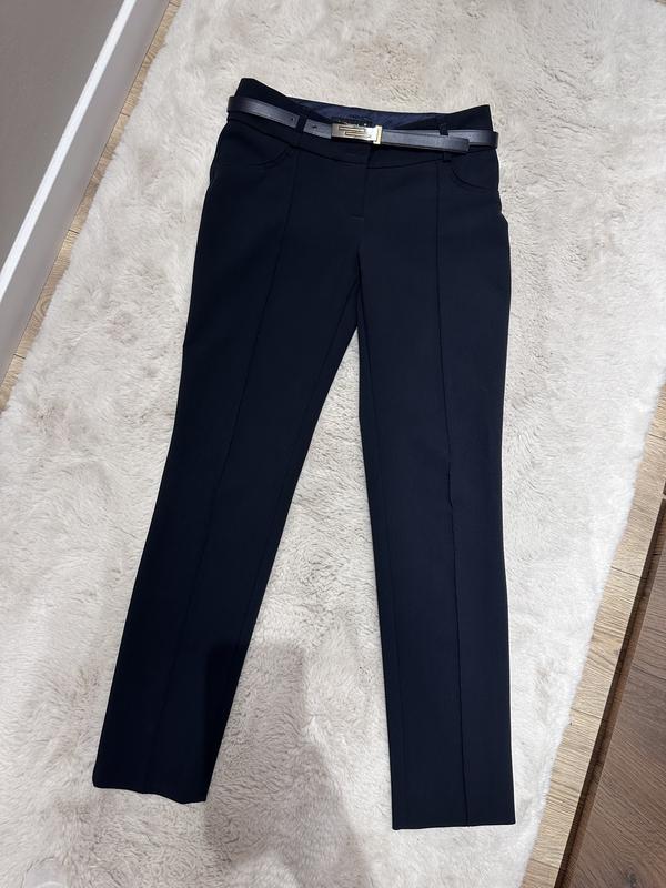 Брюки темно синего цвета (более до черного) с поясом.В 36 размере (s).стан отличный.немое недостатков.Крута качествет.В стиле кэжуал.Середтной посадки.Позаду имитация карманов.Овсемь щепотки тянутся.Ткань довольно плотная.Круто садятся по фигуре. Производитель Турция.Одевались не более 2-3 р.Купались при 1200 грн.отдам при 400.Отправка каждый день Пояс 37, длина 96 см.