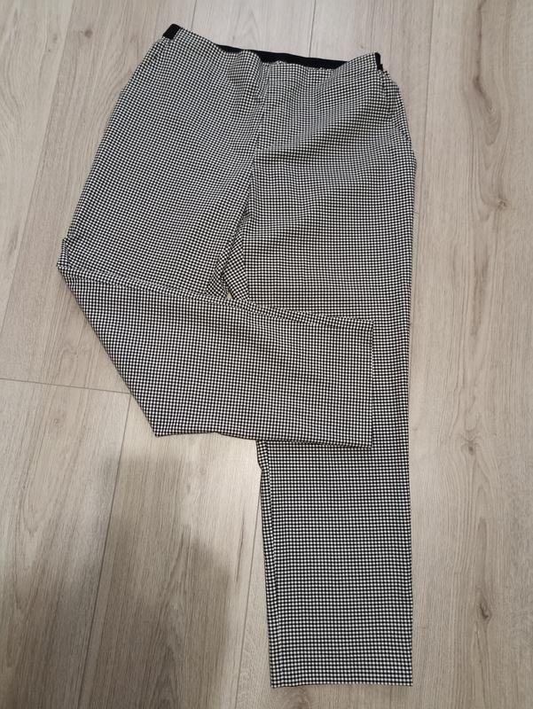 брюки укороченные. Ззаду на поясі резинка. Легкі. Полиэстер-вискоза. Не тягнуться. Боковые карманы и внутренние карманы сзади. Длина - 89. ПОТ - 38. ПОБ - 50