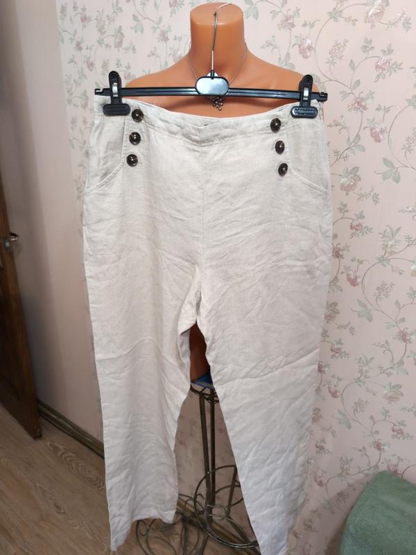 отличные брендовые брюки из льна,свободный крой,пастельный,натуральный тон