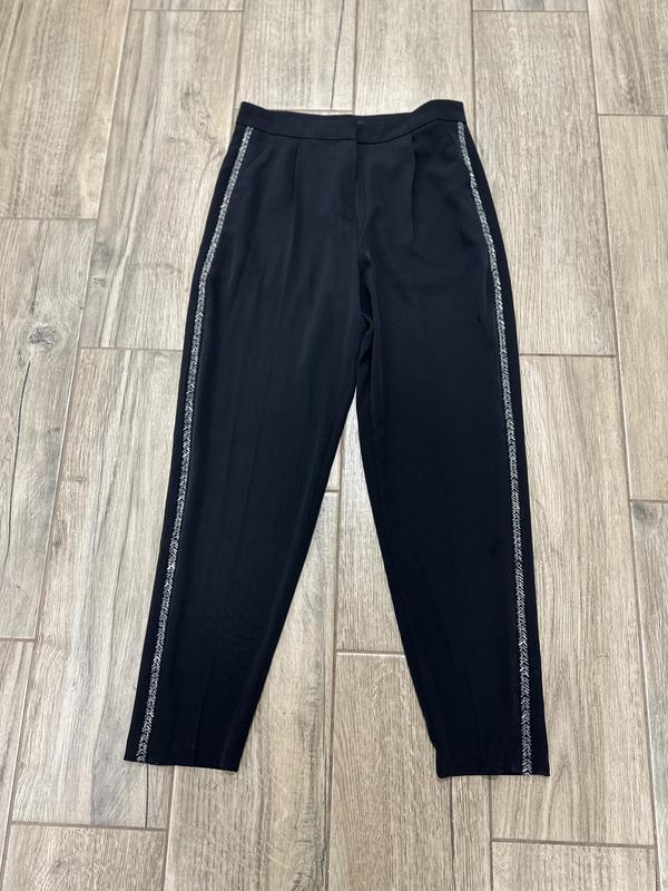 Классические брюки с полоской бисера по бокам, есть карманы, легкая ткань, размер S, состояние идеальна, красиво садятся по фигуре