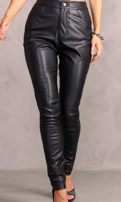 черные брюки из экокожи стильные и современные р.10 Пояс 36, бедра 50, длина 110