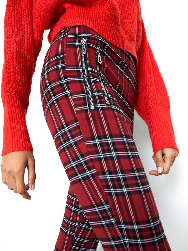 Брендовые красные брюки, леггинсы "zara" в клетку. размер xs/s.