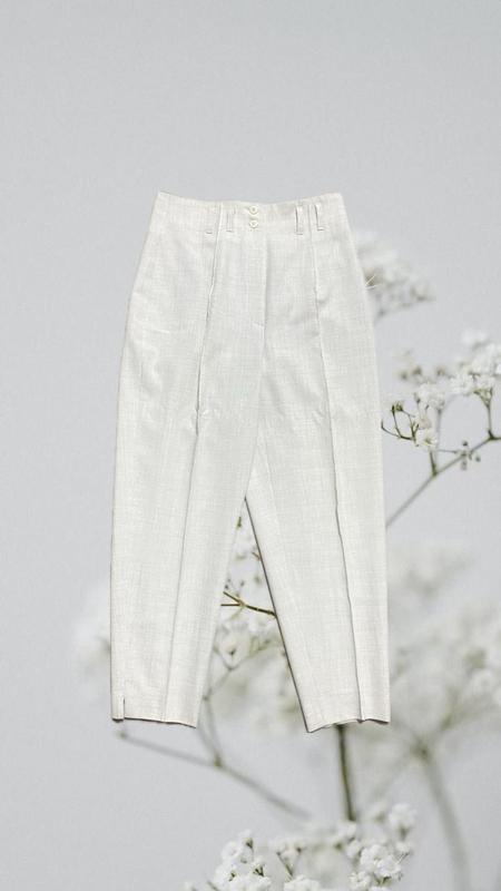 В складі льон. Стан нових. Висока посадка. Спереду прошита виточка по всій довжині колошви. Розмір М ПОТалії 37 см ПОСтегон 47-48 см Довжина по внутрішньому шву 66 см Висота посадки ззаду 44 см