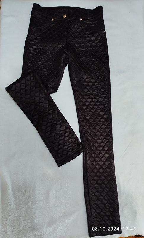 Классные и утеплённые штаны чёрного цвета в отличном состоянии. Полуобхват по поясу тянется от 36 см до 43 см, длина по внутреннему шву штанины 82 см, длина по внешнему шву штанины 103 см, высота посадки 24 см. Ткань хорошо тянется. Модель 5080Ю