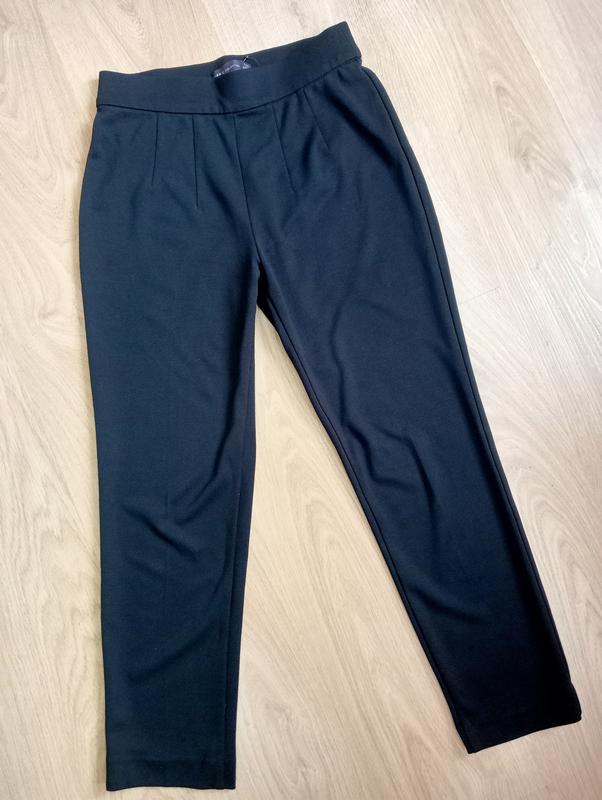 Прямого кроя, тянутся. Длина 87см, шаг шов 63см, полуобхват брюки внизу 16см, пояс 33-41см, бедра 45см, посадка спереди 27см, сзади 32см