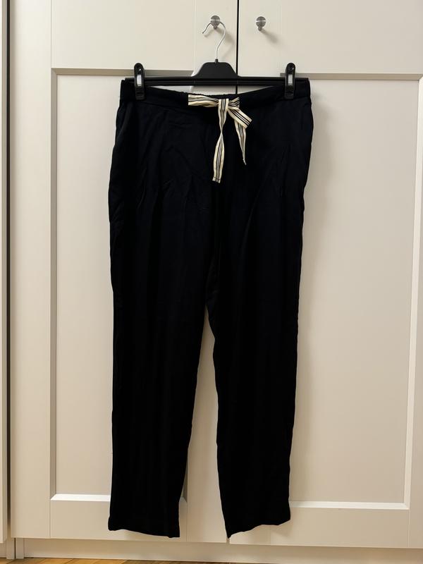 Вискозные брюки манго, размер Л, прямые. Два кармана, и завязка на поясе.
