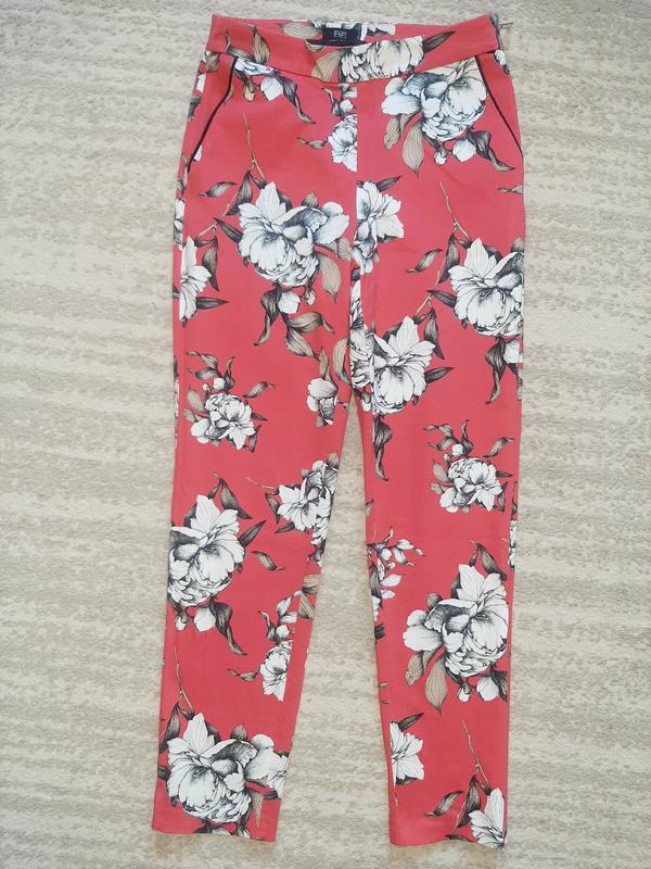 Брюки в цветочный принт, без дефектов. Пот 36см, поб 45см, длина 90, посадка 24,5см. Ткань тянется