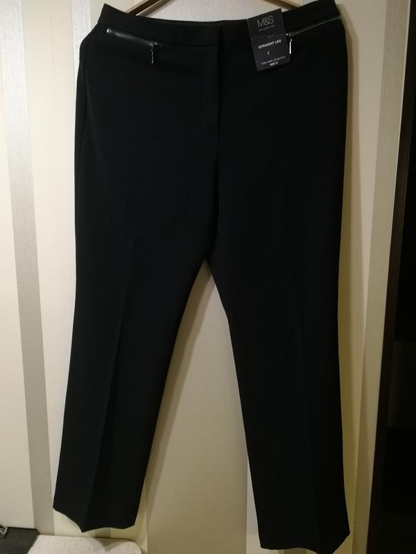 Классические брюки M&S 12 размер цвет темно синий. Хороший состав ткани. ПОТ 40, ПОБ 53, длина 97/2 подвернуты,шаговый шов 74, ширина штанины 21