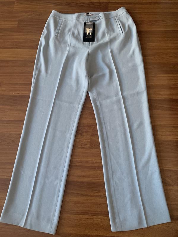 женские брюки прямого кроя голубого цвета, новые с боковыми карманами. Длина 104 см, ПОТ 45, ПОБ - 60сы