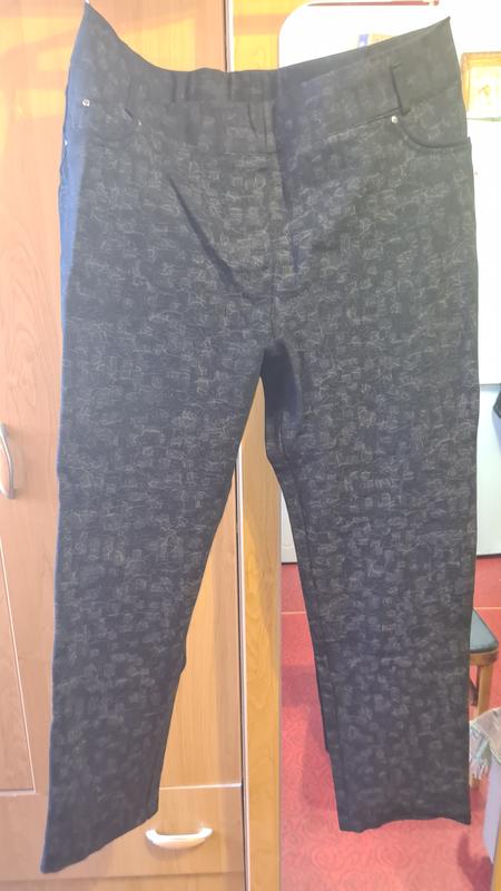 Брюки, очень плотные и тёплые,хорошо скрывают целлюлит, модель должна сидеть плотно по фигуре.Цвет очень красивый шоколад с чёрной абстракцией.Длина-114,пот (51-125)поб-(60-70),штанина верх по 33см,низ по 21см,ткань тянется