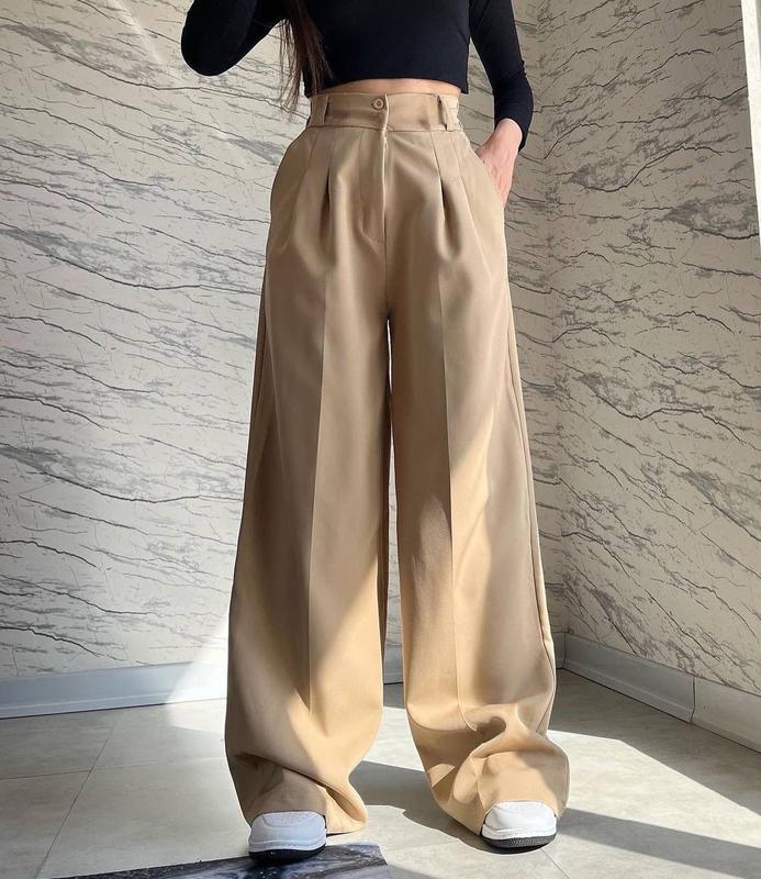 Брюки Размер: 42-44; 46-48. Тканина: Костюмка Люкс. Цвета: Черный, графит, молоко, беж. На поясе установлена резинка. Длина брюк - 103 / 105 см. От 58-68 / 70-80 Ос 90-99 / 104-112
