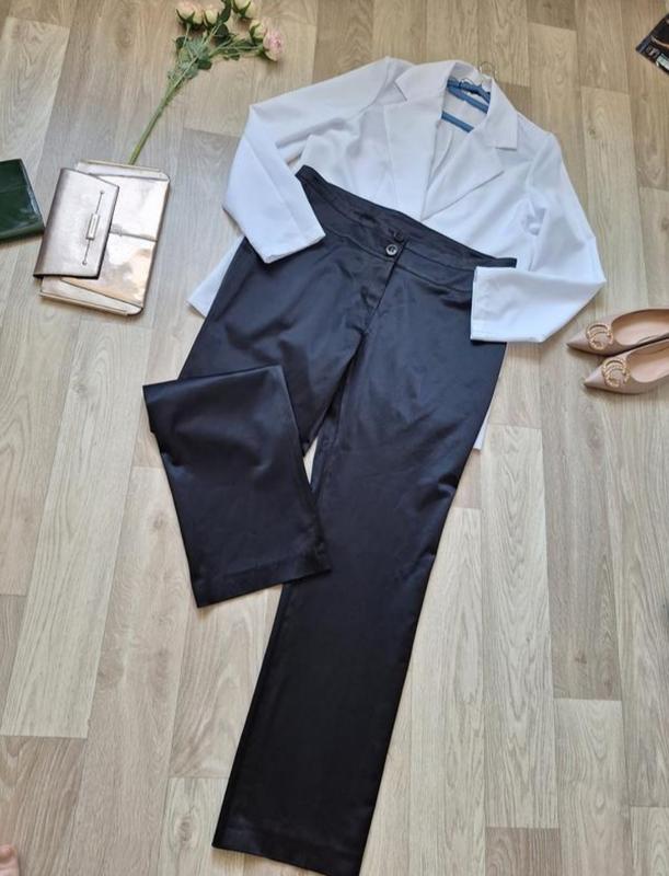 Брючки новые р 44-46 Длина 111 полуобхват 49 полуобхват бедер 63 посадка 30/41 ширина брючины верх полуобхват 34 низ 23 ткань как под атлас