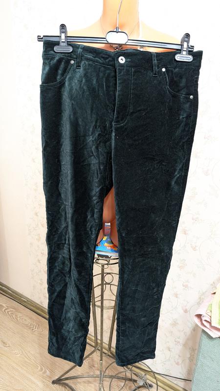 отличные,нарядные брюки,джинсы из бархата,натуральный, который, мягкий, нежный, цвет просто бомба,темный малахит. Пот 44см( 45),поб 50см(52),длина 101-102см.