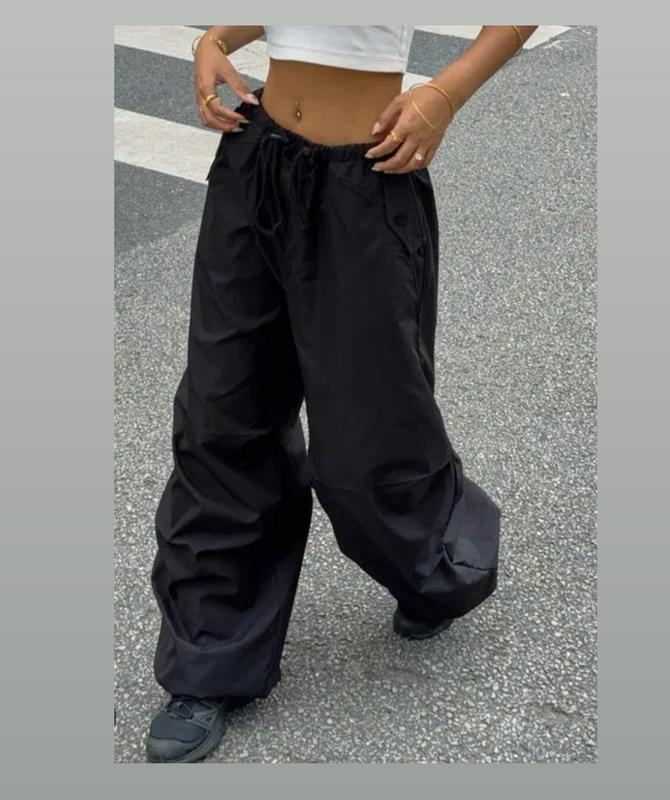 Стильные чёрные брюки клёш широкие кюлоти карго дутые