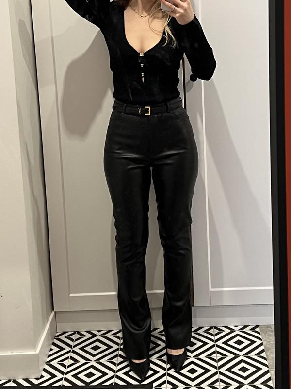 Шкіряні штани в ідеальному стані, мало ношені. Український бренд DiaDia. Розмір S, маломірять на XS. Висока посадка. Довжина 108 см. Ширина в талії 34 см Ширина в стегнах 52 см
