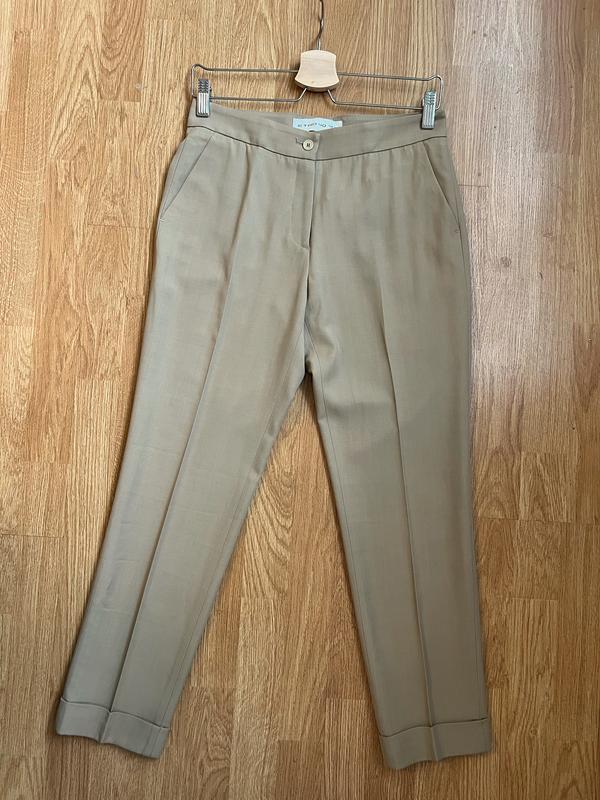 Бокова бірка зі складом тканини зрізана , на дотик присутня вовняна нитка. Довжина 91/68см Пот 37,5см поб 49см