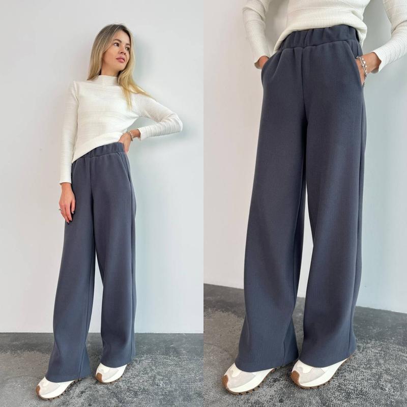 ⬆️Брюки теплые Мод.0392❤️216а Ткань: ангора вязкая плотная (тянется) Цвет: графит, мокко, черный Размер: S M L XL Брюки свободного кроя с завышенной талией на резинке и двумя карманами. Ткань очень теплая и мягкая прикосновении к телу