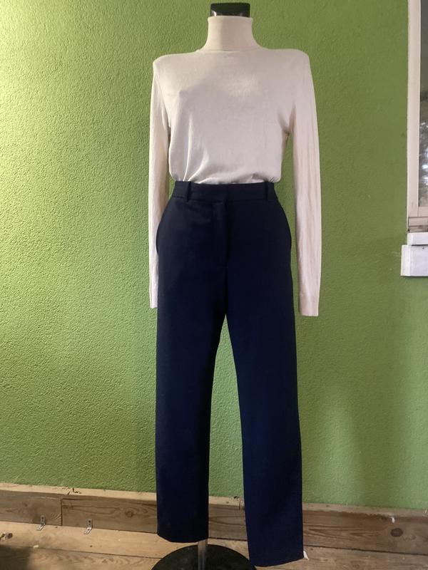 Качественные теплые брюки темно-синего цвета от COS. Состав: шерсть/полиамид/другое (64/34/2). Размер по набору-38. Замеры: длина по внешнему боковому шву-98см, по внутреннему-72 см, ПОТ-40 см, ПОБ-47 см, полуширина штанины по низу-16 см.