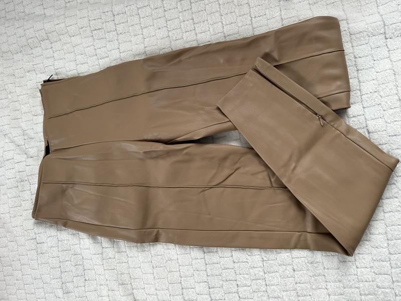 Идеальные бежевые лосинки из эко кожи