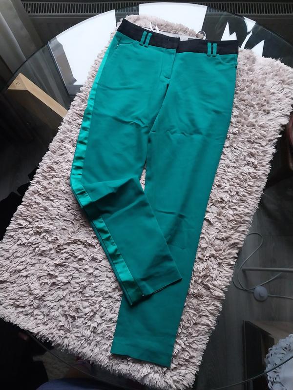 качественная Турция, дорогой бренд Bovona длина 7/8, зауженные, высокая посадка, стрейч хорошо тянутся, средней плотности внизу молнии длина 98сс крок 74см посадка 24/34см пояс 39-40см стегна 50-54см