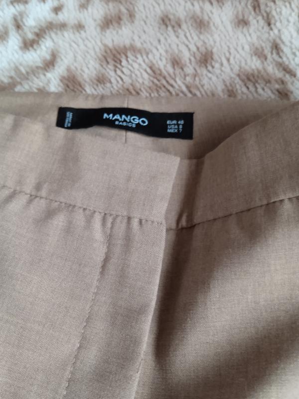 Класичні нові брюки Mango, розмір М. Колір кемел. З манжетом. Заміри: ПОТ-42, ПОБ-51, посадка спереду -26, ззаду -30. Довжина -94, вихід -16,5.