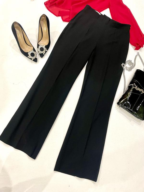Очень классные брюки из шерсти люксового бренда Escada, оригинальный фасон, небольшой клеш , сзади посередине шов с распоркой внизу, вытягивают и стройнят, ткань тянется, размер L, отлично на рост 168-170, сзади по шву есть допуск Пот 39, поб 52-54 тянется, длина 107, посадка перед 31, зад 37