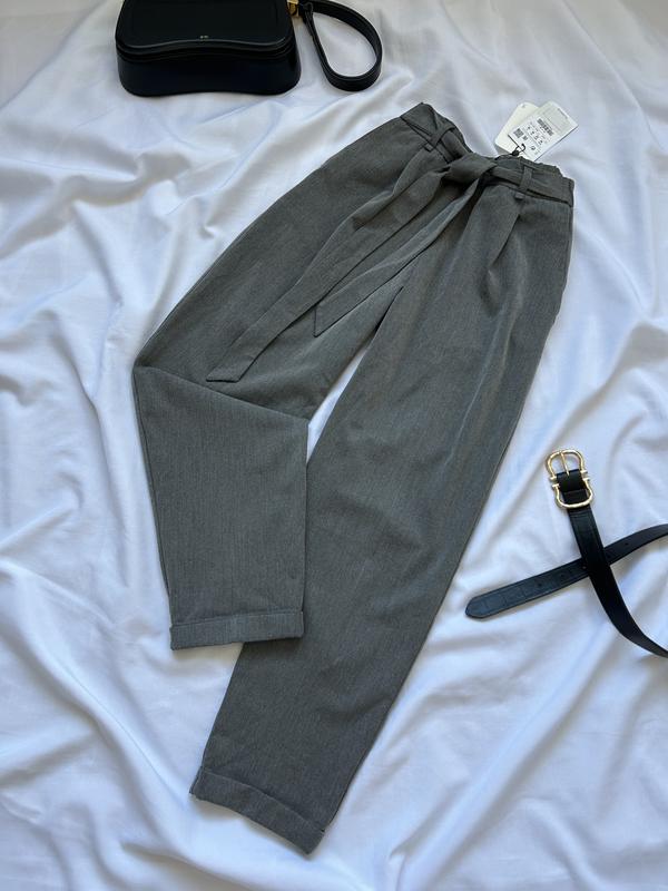 Гарні,базові брюки на високій посадці,талія на резинці напів обхват талії 36,напів обхват стегон 50,висота посадки 28/36 довжина внутрішнього кроку 66 довжина виробу 91