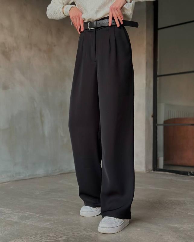 Брюки на резинке✨ Модель: 120 Размер: 42-44; 46-48. Тканина: Костюмка Люкс. Цвета: Черный, графит, молоко, беж. Пояс можно приобрести по желанию + 50 грн🏷️ 📌На поясе установлена резинка. Длина брюк - 103 / 105 см. От 58-68 / 70-80 Ос 86-95 / 104-112