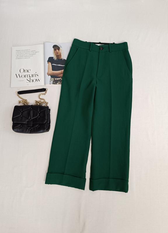 🌿зеленые брюки от Zara высокой посадки с боковыми карманами, ткань плотная, красиво держит форму Размер:XS Замеры:ПО талии 36 см, ПО бедер 47 см, длина 90 см