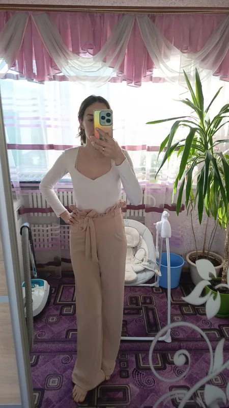 Клешные брюки, с завышенной талией. Есть дополнительно пояс Размер С. Новые, ни разу не одеты. Вся длина 116 Крок 81