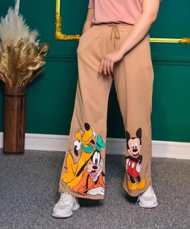 Новые бежевые брюки с мики маусом