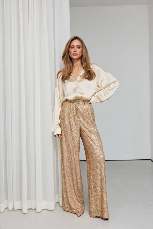 ✨ Брюки с пайетками ✨ • Размер: XS, S, M, L • Ткань: прозрачная сетчатая ткань с пайетками, на подкладке "миромасло" • Состав: • 98% полиэстер • 2% еластан • Цвет: черный, золото • Качество: люкс 💎 💰 Цена: 2400 грн 🌷 Идеальный выбор для праздничного и элегантного образа! ✨