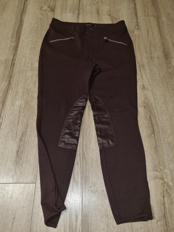 трикотажные брюки с кожаными вставками.низ на застежке на пуговицах.гуговицы брендированы.
