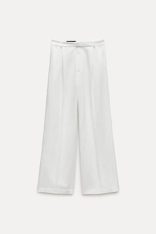 Цена 2050 Брюки с высокой талией из 24% льна со шлевками. Боковые карманы и накладные прорезные карманы сзади. Плиссированная деталь спереди. Застежка спереди на молнию, внутреннюю кнопку и металлические крючки. Сирий | 1255/410/712 ZR