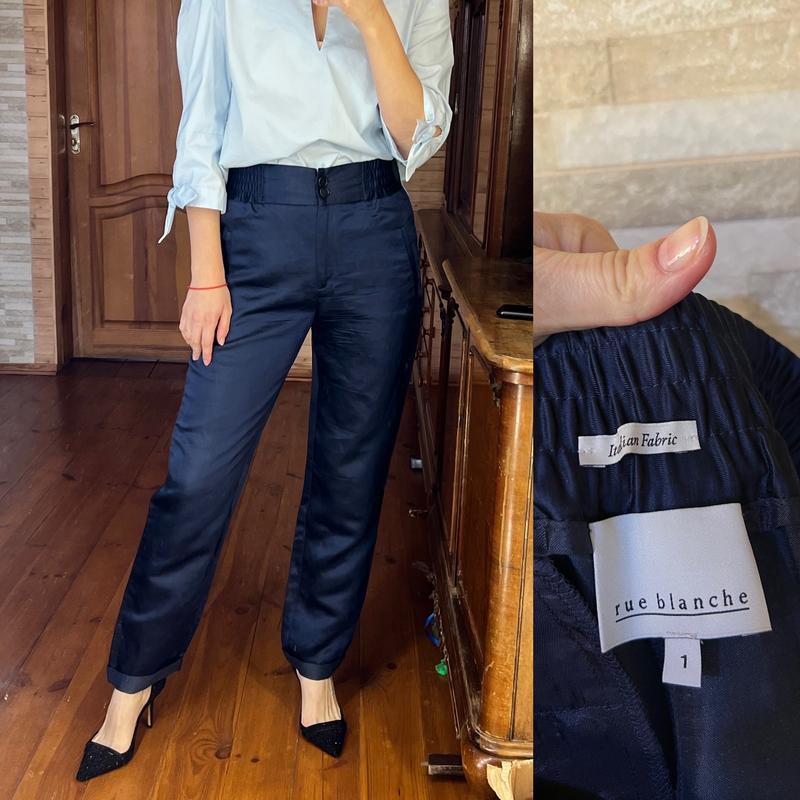 Неймовірно гарний склад,висока посадка ,Люксовий бренд ,зараз представлені на сайті схожа модель в свитку кольорі ,ціна 295€.Довжмна 99/71.посадка 29 см спереду,верх на резинці 35/39.бедра 50