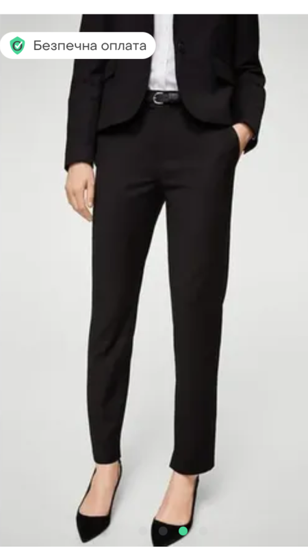 Черные прямые укороченные брюки классического кроя. Два боковых кармана спереди и два прорезных сзади.