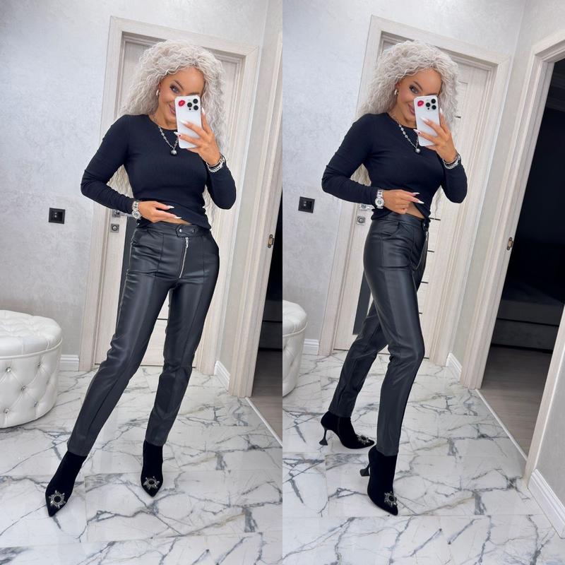 Брюки из экокожи Талия на 2х кнопках и молнии, рабочие карманы. Материал: lux экокожа на замшевой основе. Красиво тянется. Размеры: 44,46,48,50,52 Замеры - на последнем фото - выполнены по верху изделия, в нерастянутом виде. Цвета: мокко, черный