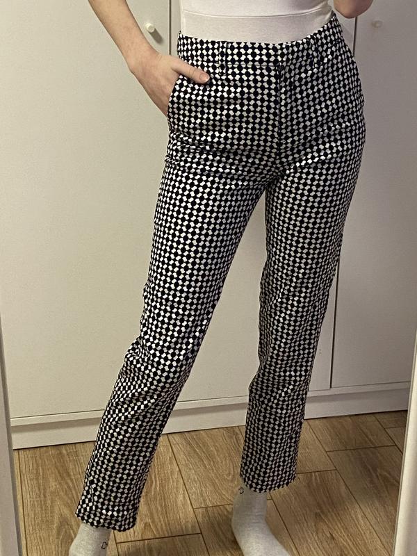 Классические брюки h&m с принтом. Размер 32 EUR Замеры: Длина: 92 см Полу обхват талии: 33 см Полу обхват бедер: 44 см Полу обхват низа: 15 см Без дефектов, идеальное состояние